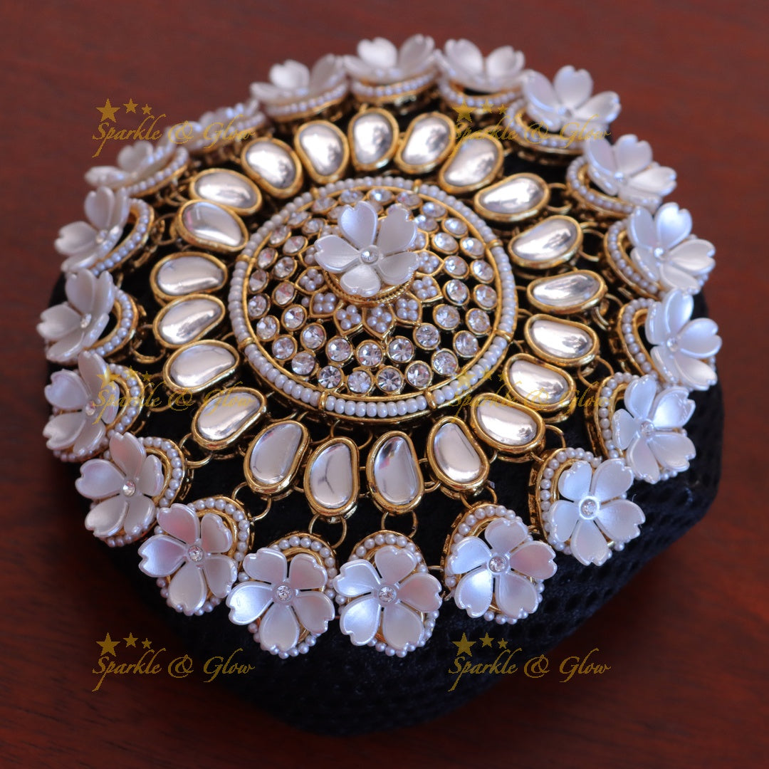 This adornment is not only visually stunning but also lightweight and comfortable, ensuring you feel as luxurious as you look. Ideal for pairing with a variety of traditional and contemporary bridal outfits, it serves as a versatile piece, adding a touch of glamour to your wedding ensemble.