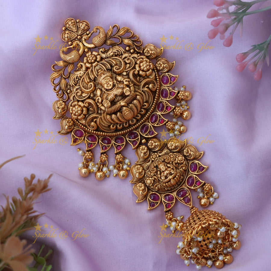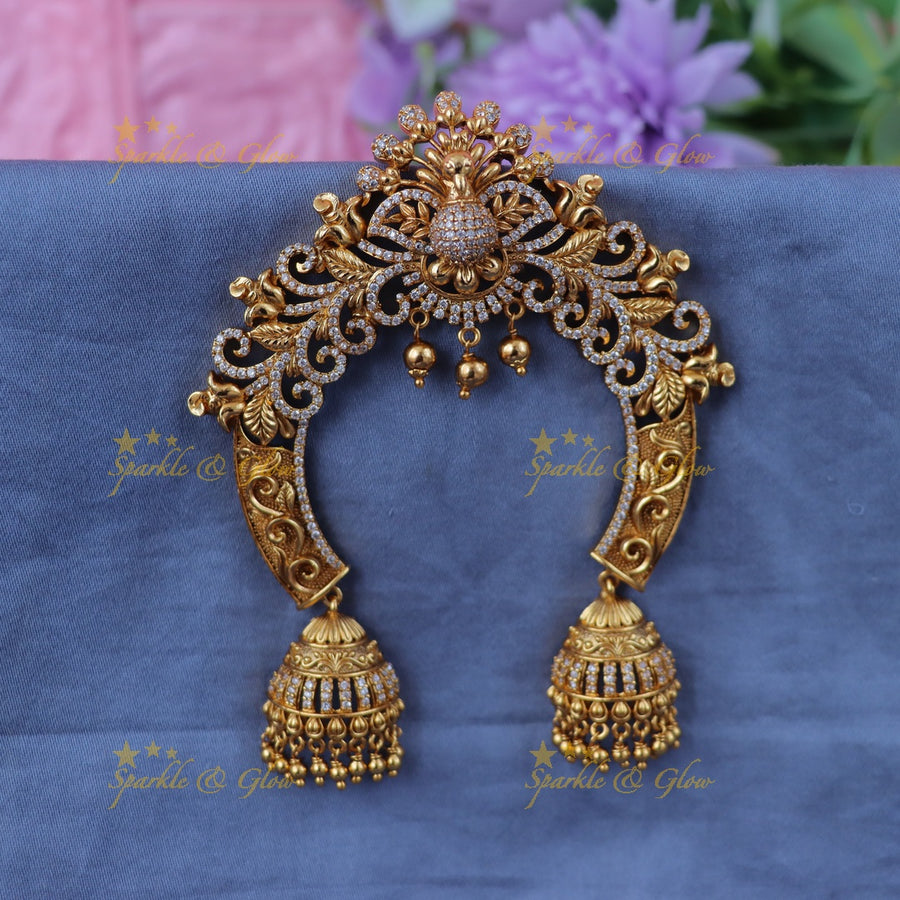 Step into a world of regal grandeur with our exquisite collection of Indian imitation Hair Accessories. Our range includes grand hair accessories like the Grand Intricate Lakshmi carved antique Jada billa with maatil, Elegant Lakshmi with Peacock carved gold alike Jada billa with gold maatil, Exclusive floral peacock intricate design jadabilla and more. Each piece is meticulously designed, echoing the motifs and grace of traditional Indian jewelry.