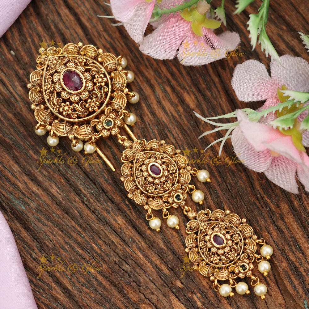 Festive Celebrations: Antique gold floral and temple designs add a gentle sparkle to braids and buns, making them perfect for pujas or parties.