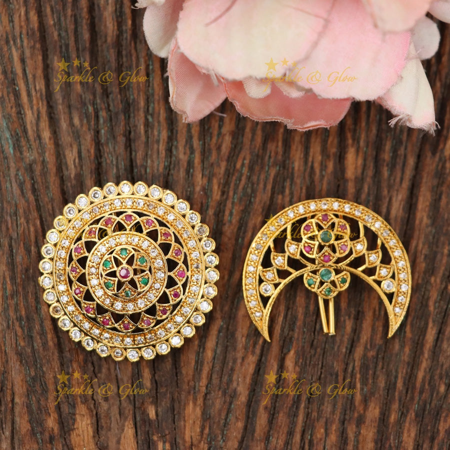 Festive Glam: You can never go wrong adding sparkle to your all hands with a Floral Stone Hairpin or Gold Mango Jadabilla! They are both light and colorful yet bold.