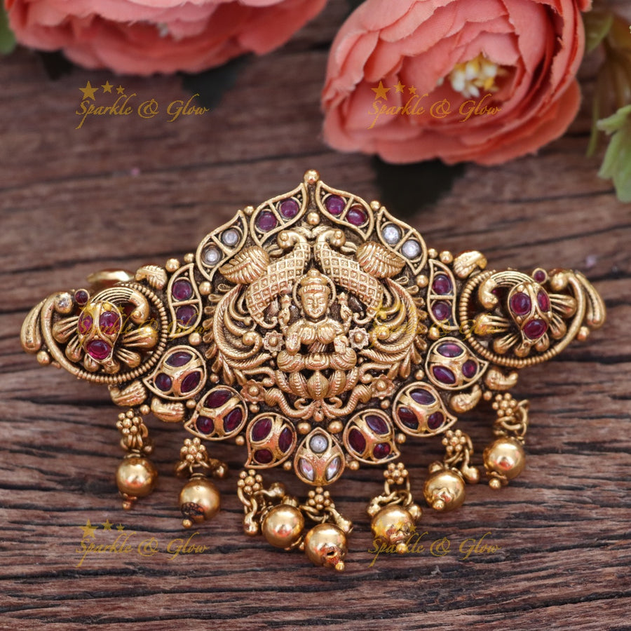 Step into a world of regal grandeur with our exquisite collection of Indian imitation Hair Accessories. Our range includes grand hair accessories like the Grand Intricate Lakshmi carved antique Jada billa with maatil, Elegant Lakshmi with Peacock carved gold alike Jada billa with gold maatil, Exclusive floral peacock intricate design jadabilla and more. Each piece is meticulously designed, echoing the motifs and grace of traditional Indian jewelry.