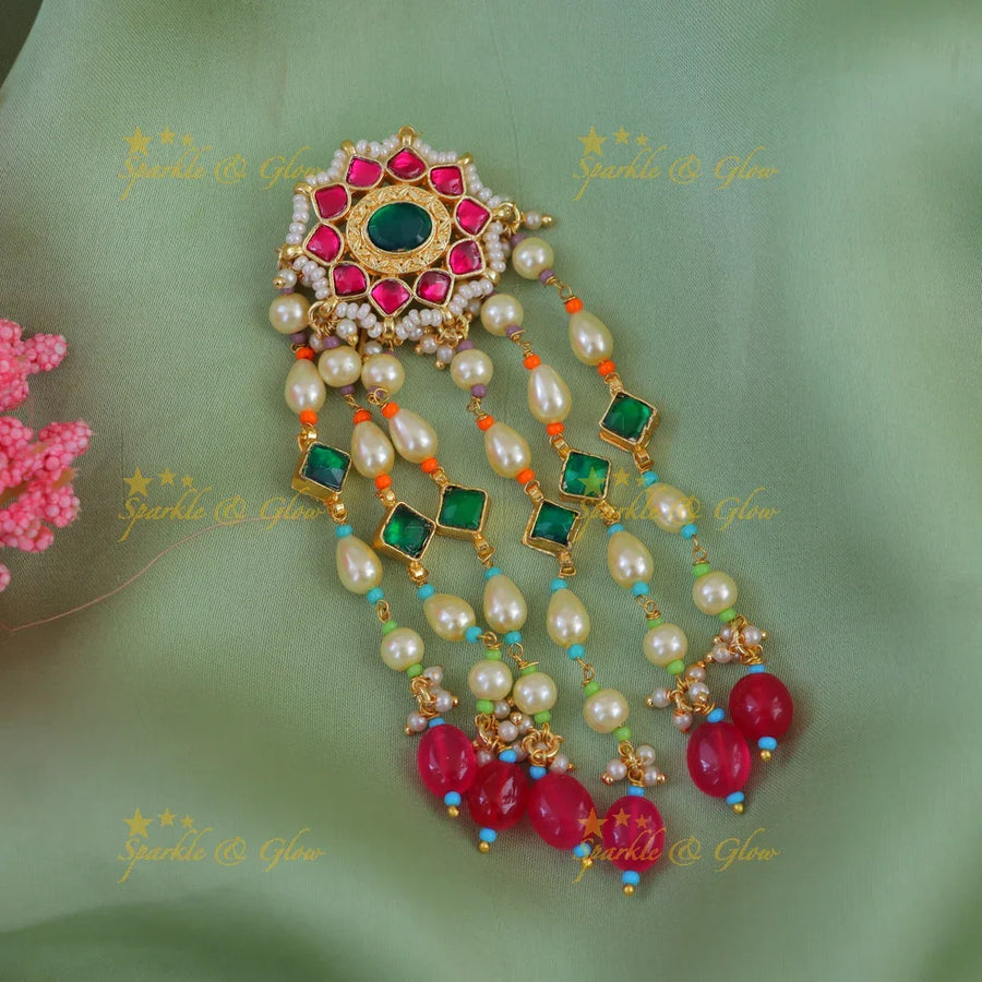 Whether you choose the Lakshmi Jadau Half Moon Hairpins or the Floral Jadabilla Hairpieces, each accessory is designed to help you feel special. The antique gold tones and pearl details add a vintage touch that complements sarees, lehengas, and Indo-Western outfits beautifully.
