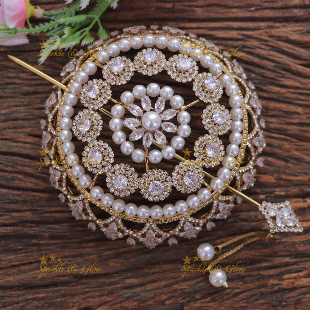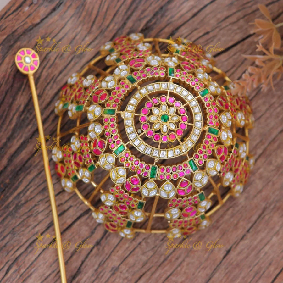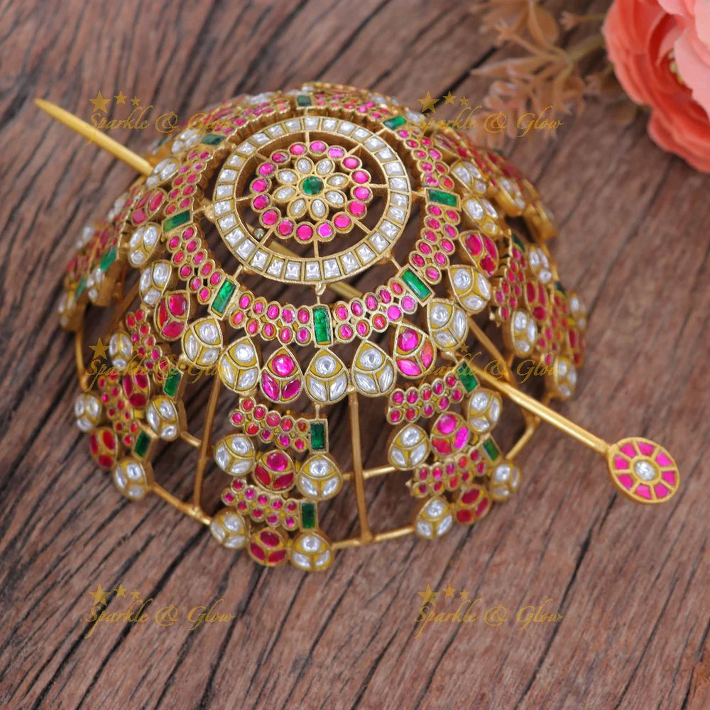 Elegant Jadau Kundan Floral Gold Hair Bun by Sparkle & Glow