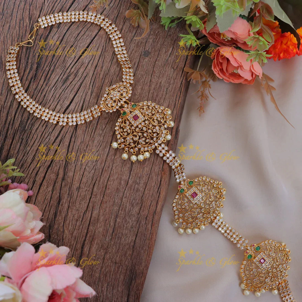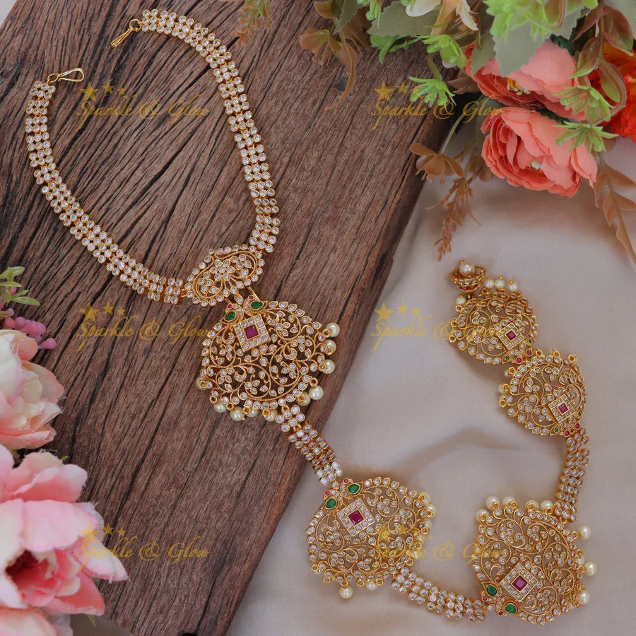 Our collection is ideal for adding a festive touch to your outfit, with rich motifs, luminous beads, and an antique finish. The pieces are versatile, perfect for traditional ceremonies, weddings, and grand celebrations. They pair beautifully with our other collections. Explore our hip belts, bangles, harams and earrings for a complete look.