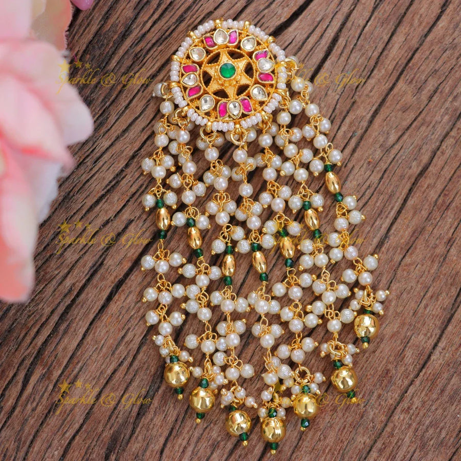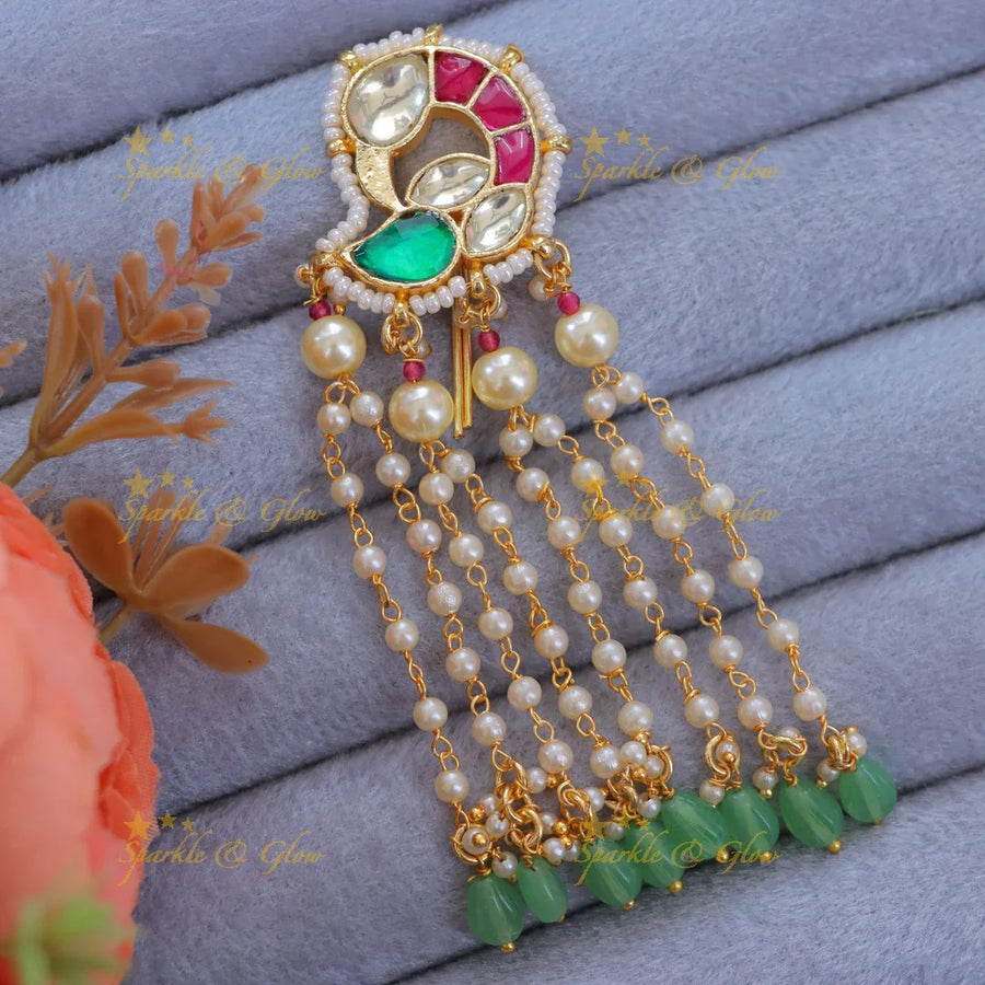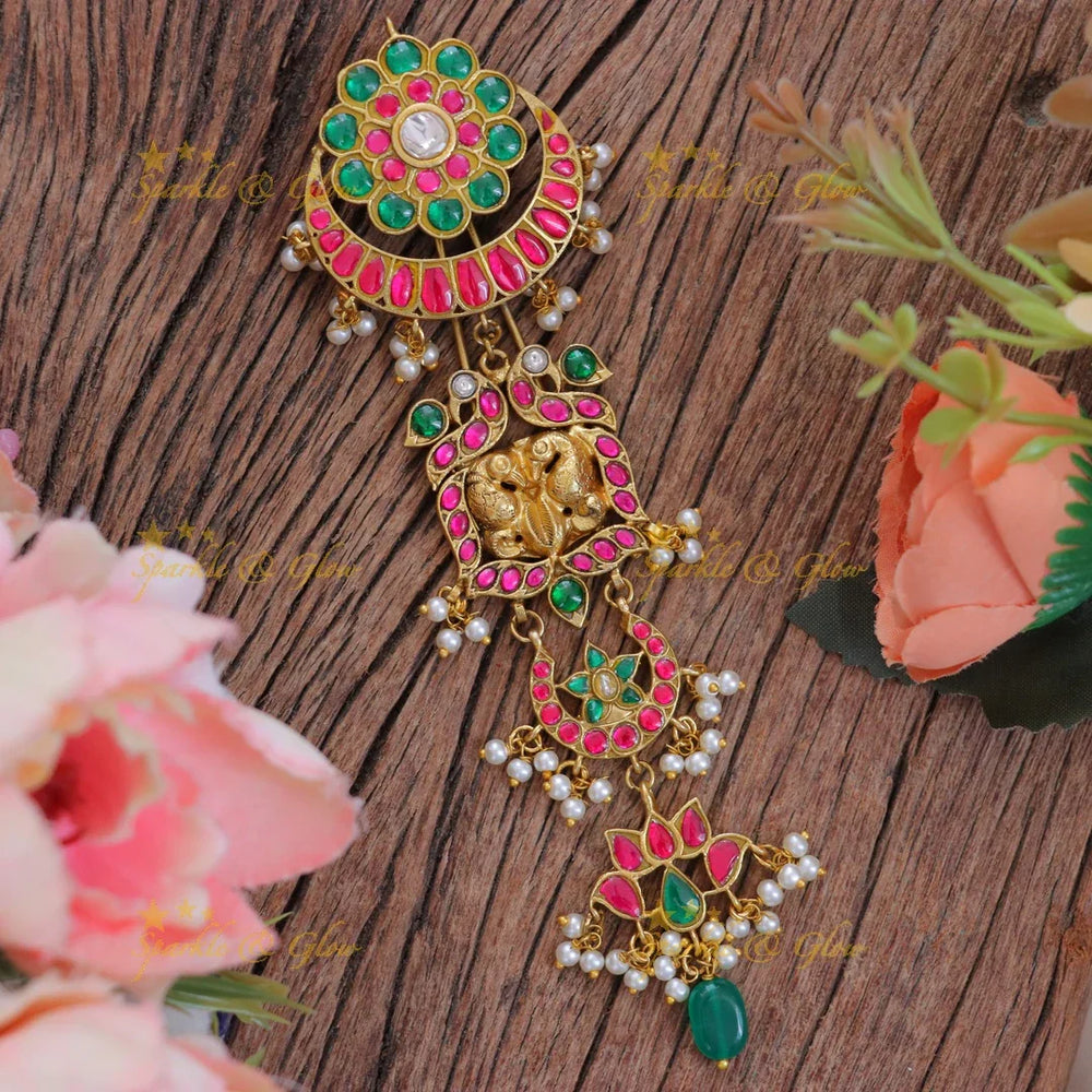 Exquisite Jadau Floral Peacock Hair Jewel for Weddings