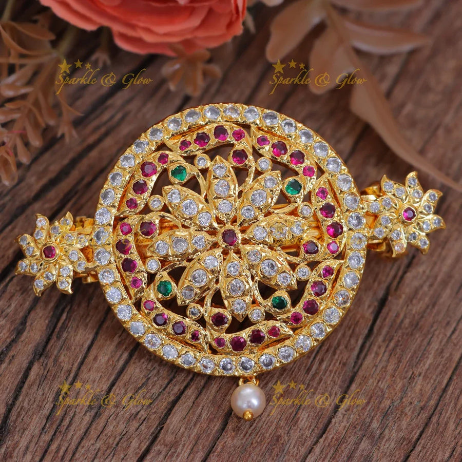 • Festive Glam: You can never go wrong adding sparkle to your all hands with a Floral Stone Hairpin or Gold Mango Jadabilla! They are both light and colorful yet bold.
