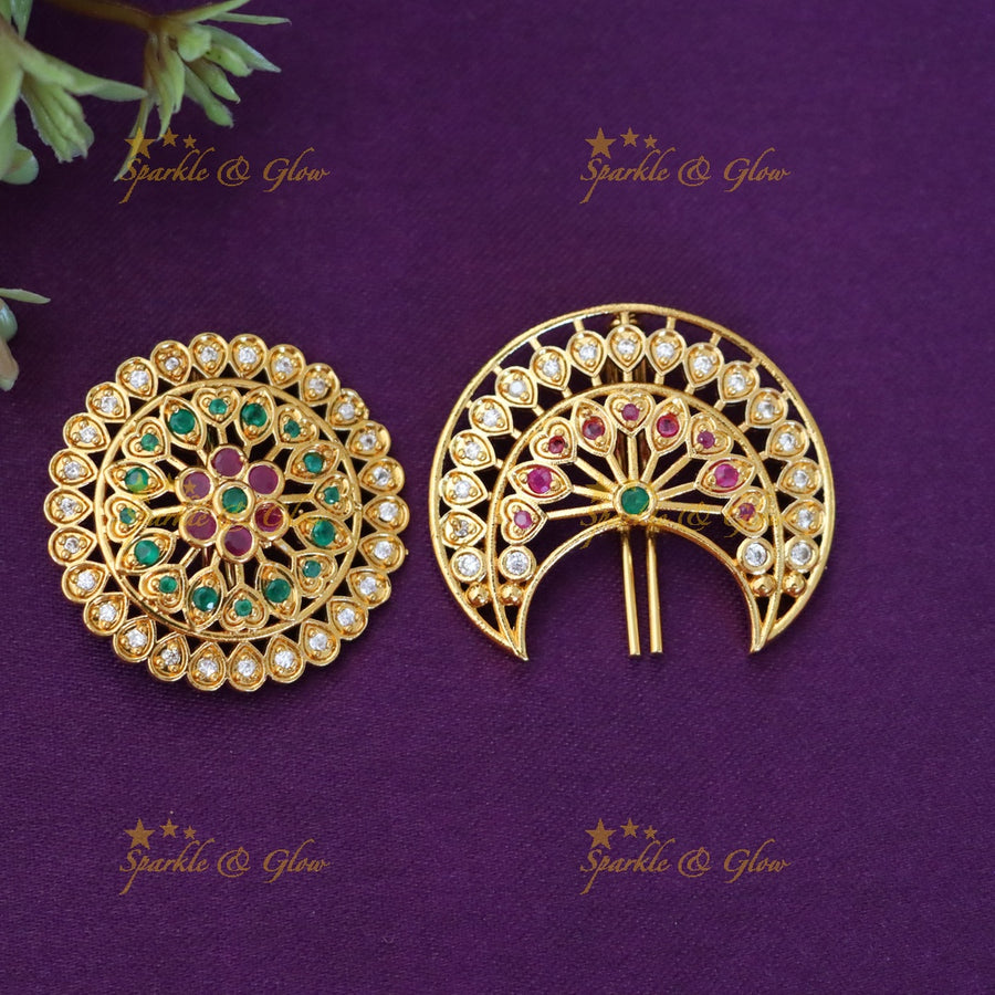 Step into a world of regal grandeur with our exquisite collection of Indian imitation Hair Accessories. Our range includes grand hair accessories like the Grand Intricate Lakshmi carved antique Jada billa with maatil, Elegant Lakshmi with Peacock carved gold alike Jada billa with gold maatil, Exclusive floral peacock intricate design jadabilla and more. Each piece is meticulously designed, echoing the motifs and grace of traditional Indian jewelry.