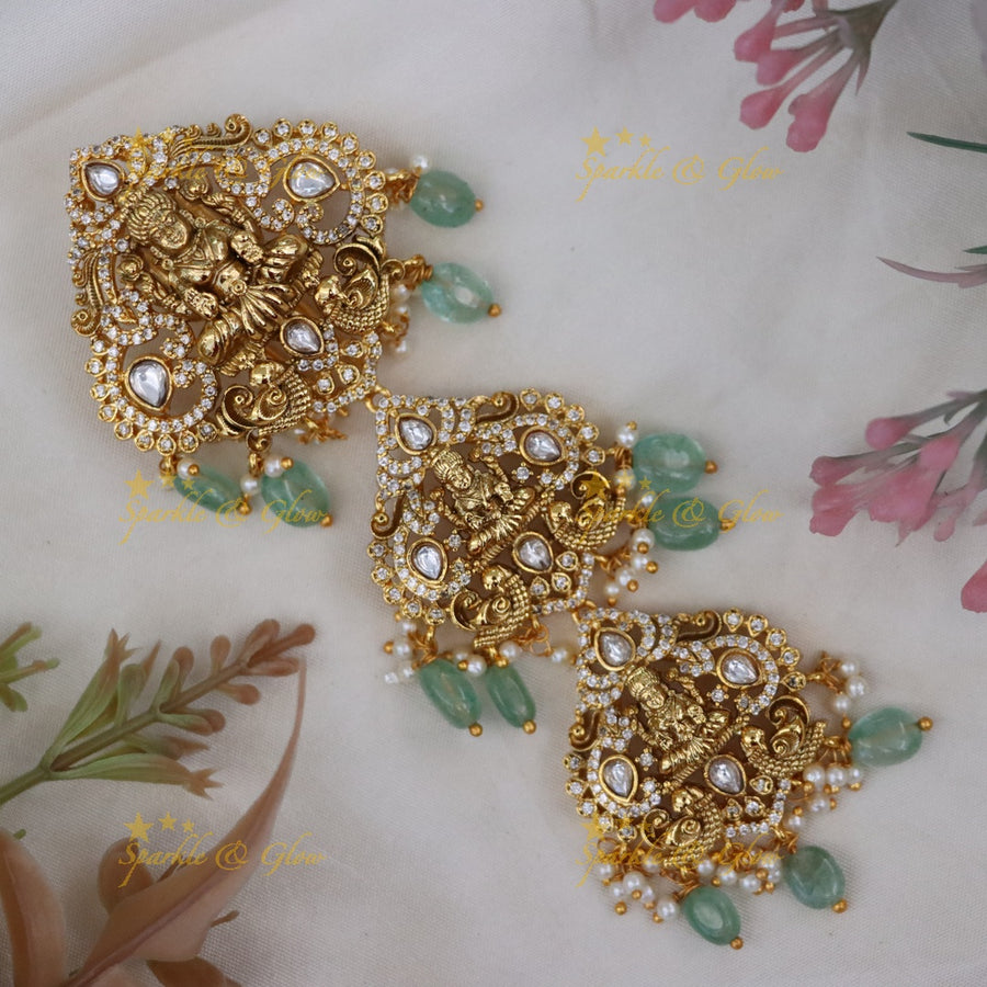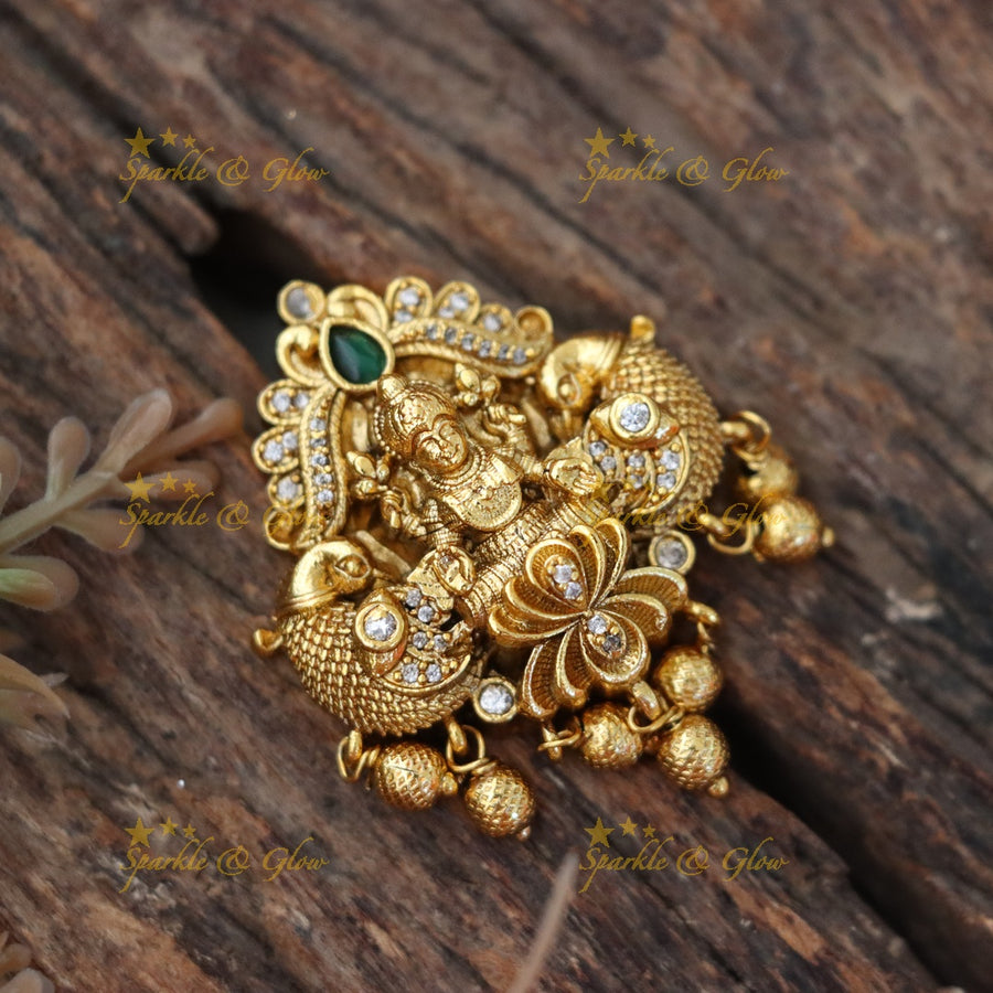 Every piece is handmade with care and features classic designs like Lakshmi, peacocks, and flowers in antique gold finishes.