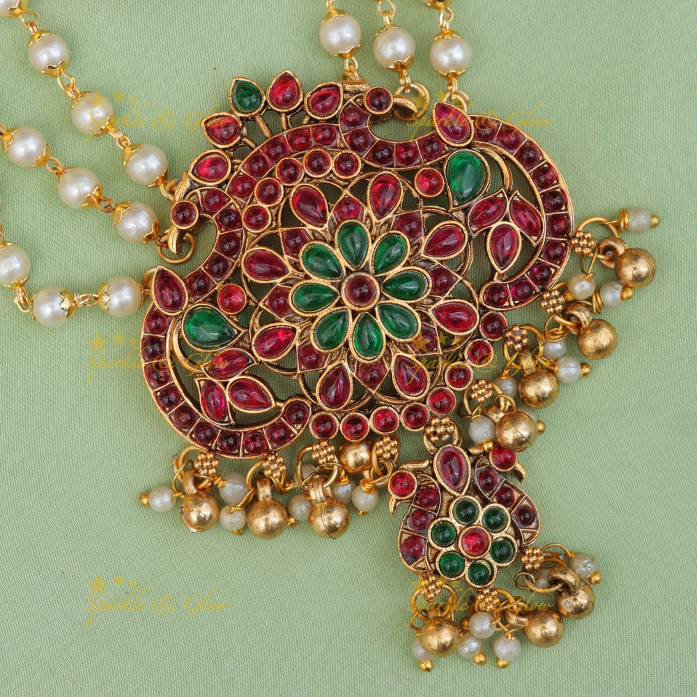 Unveil the charm of traditional elegance with our exquisite Kemp Jewelry - Leaf Floral Pendant & Pearls Set. Crafted with precision, this jewelry set brings together the opulence of kemp stones and the timeless allure of pearls, making it a stunning addition to your festive or wedding attire.