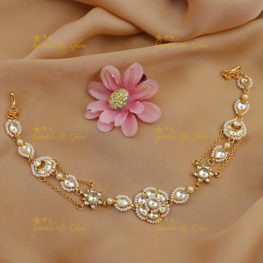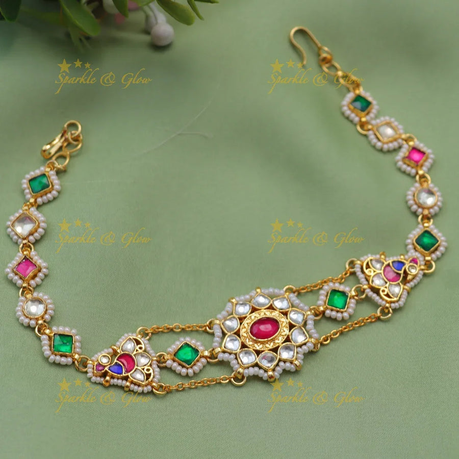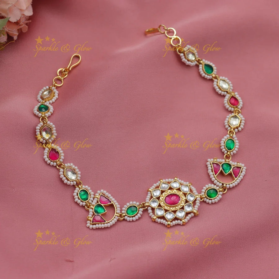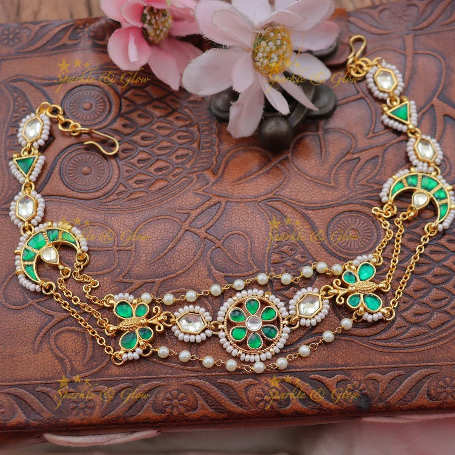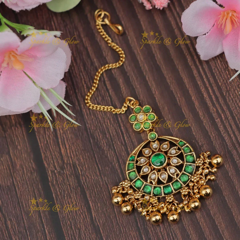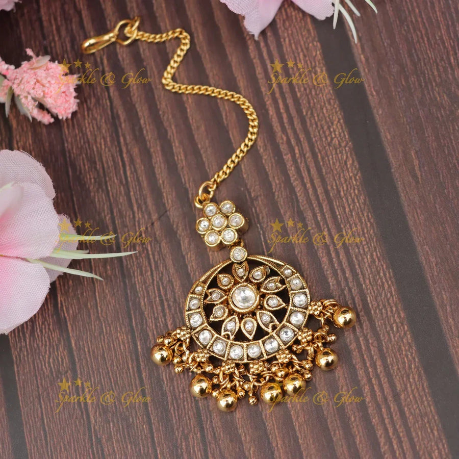 Embrace the richness of traditional Indian aesthetics with our exquisite Maang Tikka Collection. Each piece is beautifully crafted, featuring stunning motifs inspired by India's rich cultural tapestry. From the intricate Lakshmi and peacock carvings to the delicate floral designs, our maang tikkas are adorned with sparkling CZ stones, lustrous pearls, and vibrant gold beads. The gold-alike finish adds a touch of elegance and grandeur, making these pieces a perfect addition to your festive wear.