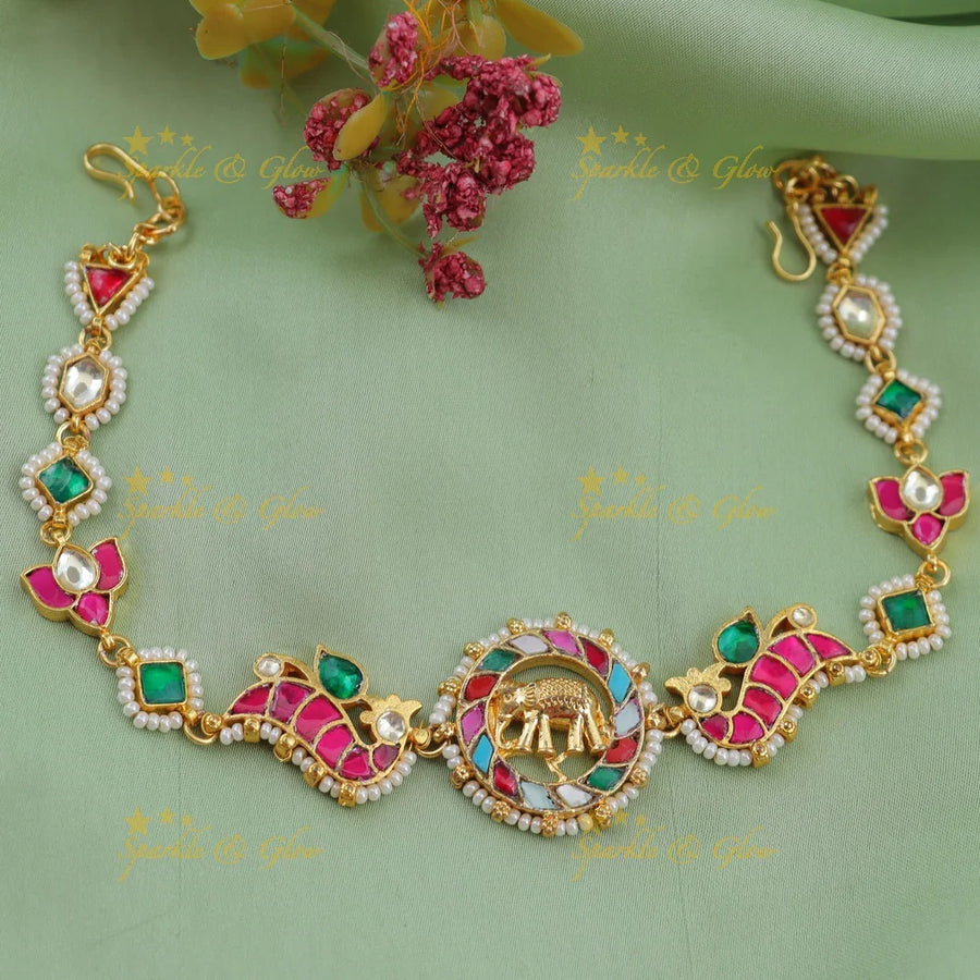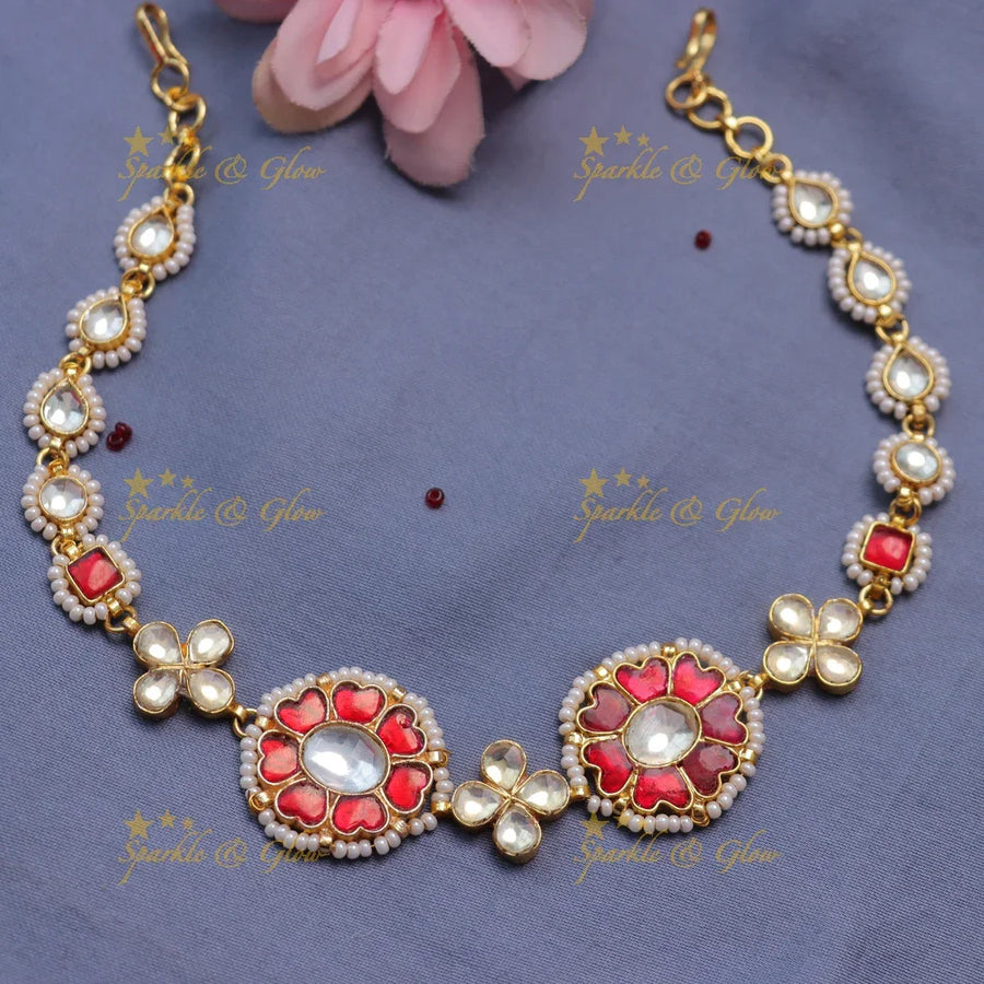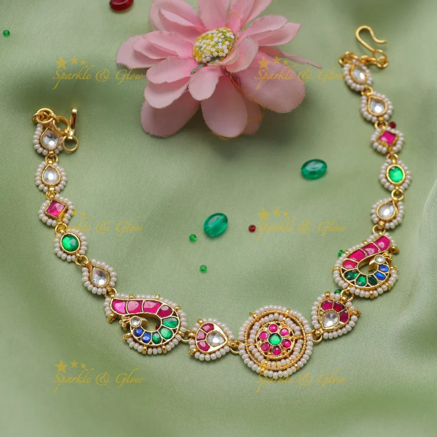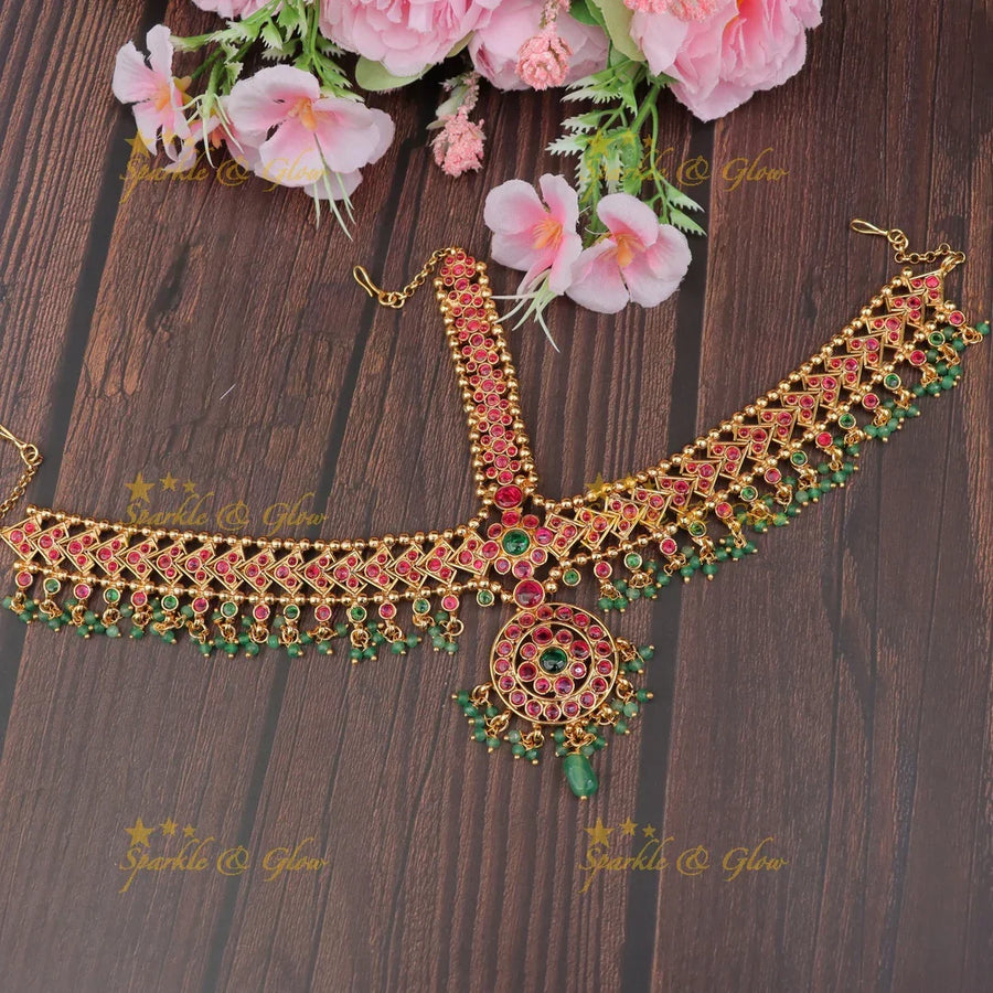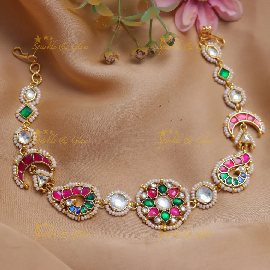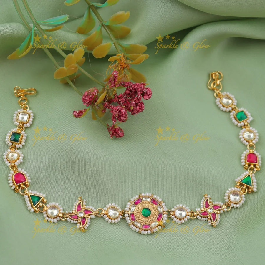 Embrace the richness of traditional Indian aesthetics with our exquisite Maang Tikka Collection. Each piece is beautifully crafted, featuring stunning motifs inspired by India's rich cultural tapestry. From the intricate Lakshmi and peacock carvings to the delicate floral designs, our maang tikkas are adorned with sparkling CZ stones, lustrous pearls, and vibrant gold beads. The gold-alike finish adds a touch of elegance and grandeur, making these pieces a perfect addition to your festive wear.