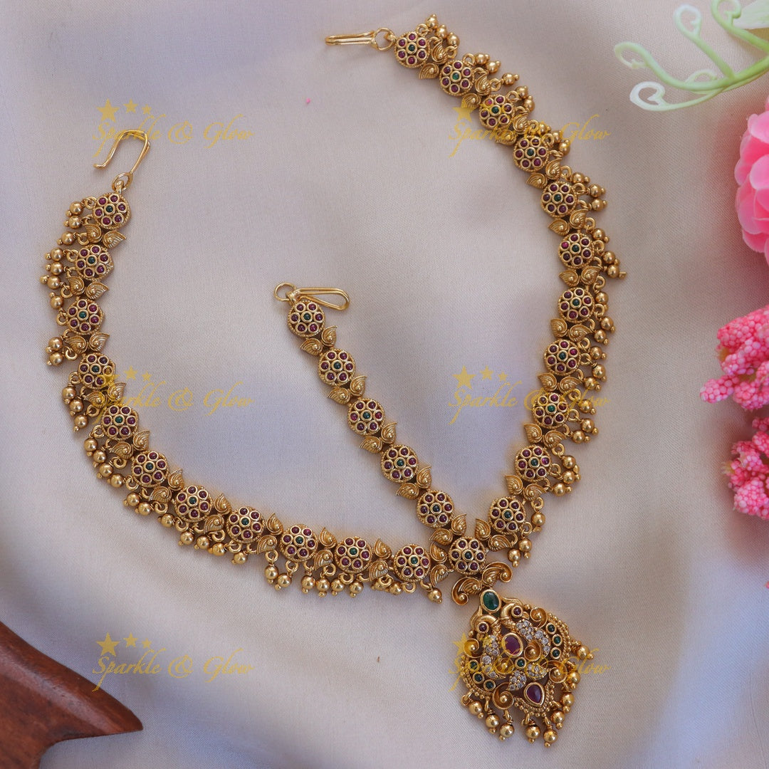 Discover the elegance and tradition encapsulated in our Stunning Kemp Peacock Floral Bridal Maang Tikka. This exquisite piece of jewellery combines the timeless beauty of peacock motifs with intricate floral designs, perfect for brides seeking elegance on their big day.