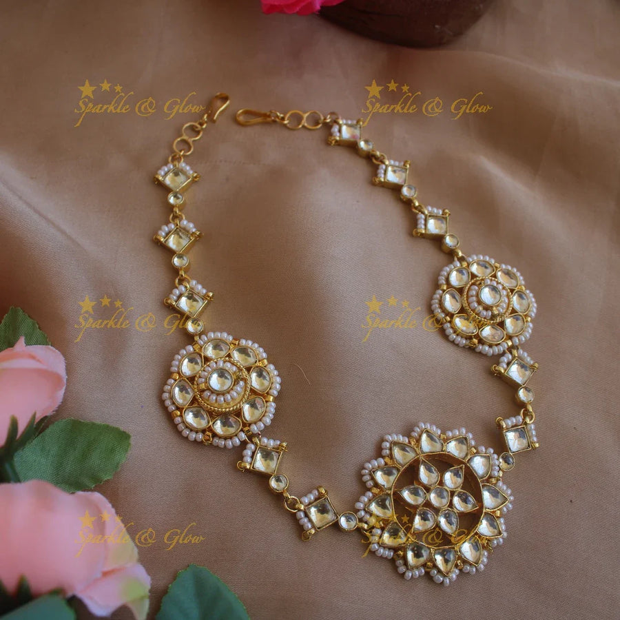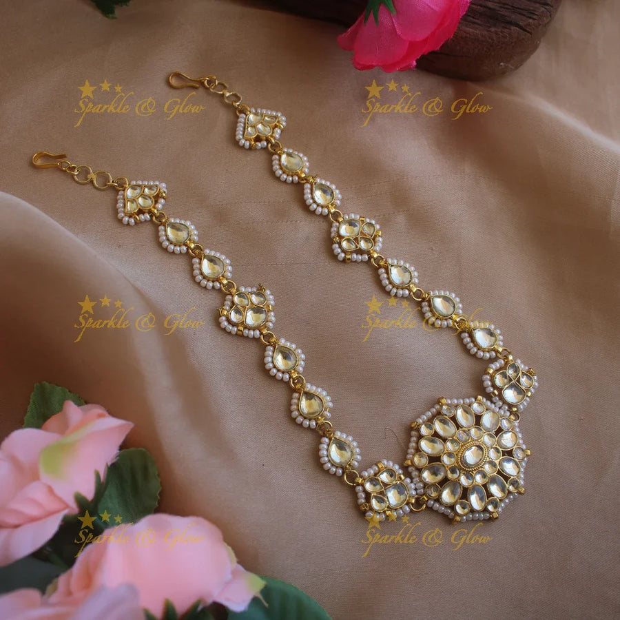 Embrace the richness of traditional Indian aesthetics with our exquisite Maang Tikka Collection. Each piece is beautifully crafted, featuring stunning motifs inspired by India's rich cultural tapestry. From the intricate Lakshmi and peacock carvings to the delicate floral designs, our maang tikkas are adorned with sparkling CZ stones, lustrous pearls, and vibrant gold beads. The gold-alike finish adds a touch of elegance and grandeur, making these pieces a perfect addition to your festive wear.