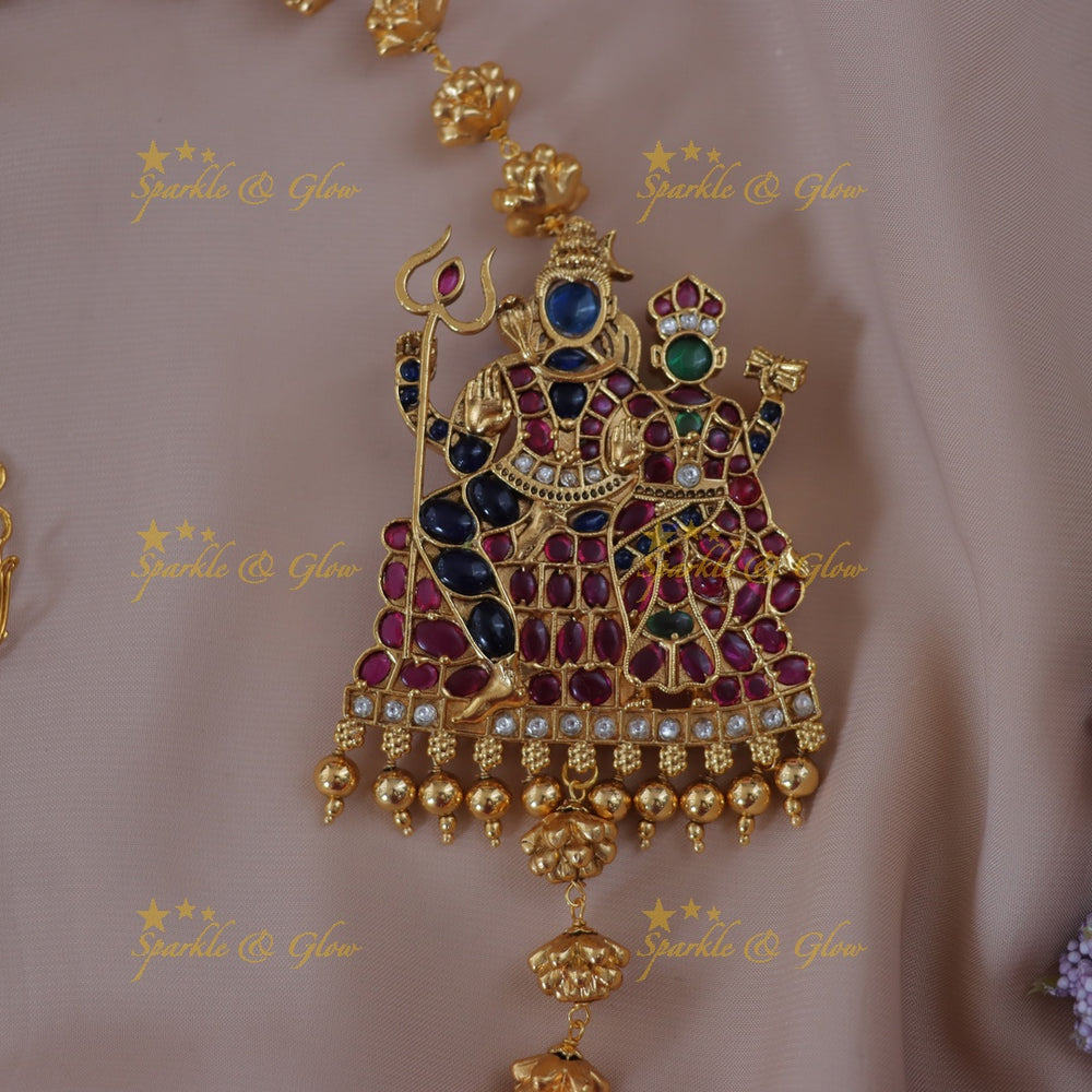 Discover the elegance of traditional Indian craftsmanship with our Exquisite Flower Bead Shiv Parvati MOP Necklace, a stunning symbolic piece that embodies the divine spirit of Shiva and Parvati. Crafted with meticulous attention to detail, this necklace blends premium materials with artistry, making it perfect for festive occasions, weddings, or as a treasured addition to your jewellery collection.
