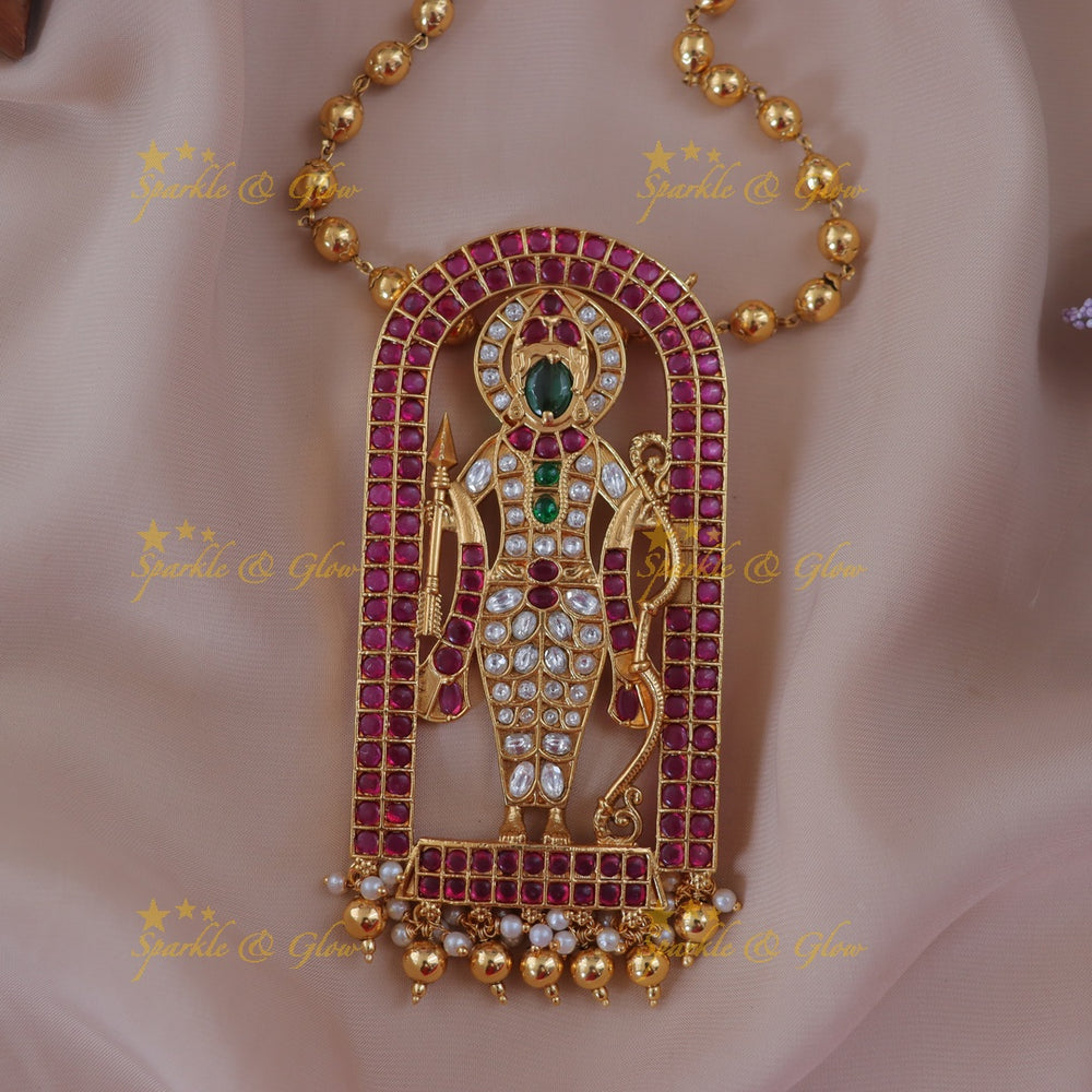 This necklace is an ideal accessory for festive celebrations, weddings, or any special event where you want to stand out with grace and charm. The beautifully arranged beads on the chain add a touch of modern elegance while preserving traditional aesthetics. The intricate idol design is not just a piece of jewelry; it’s a tribute to the art and culture that has thrived for centuries.