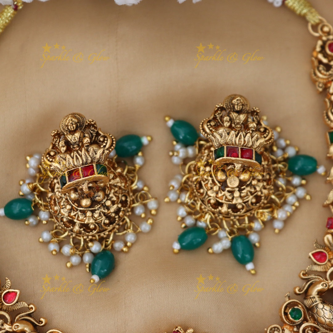 Exquisite Lakshmi Peacock Green Beads Bridal Jewellery