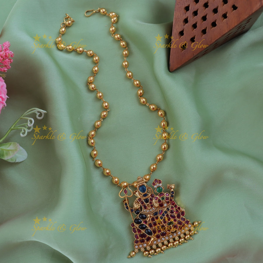 Meta Description: Embrace elegance with our Shiv Parvati Gold Necklace. Ideal for festive occasions and weddings, this piece enriches your traditional outfit.