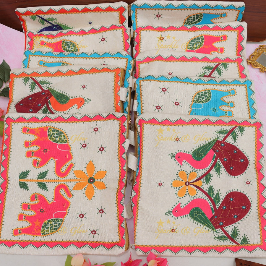 Beautiful Jute Bags for Weddings & Festive Gifts set of 10 Assorted Designs