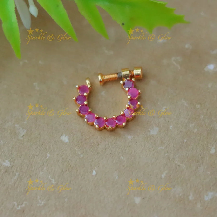 Meta Description: Elevate your festive look with our gold-plated ruby nose pin. Perfect for weddings and celebrations, this elegant piece combines traditional charm with modern style.
