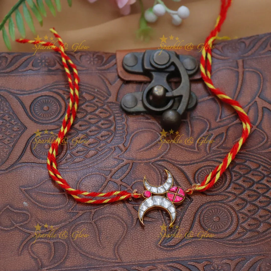 Exquisite Crescent Moon Rakhi with Jadau Kundan Design
