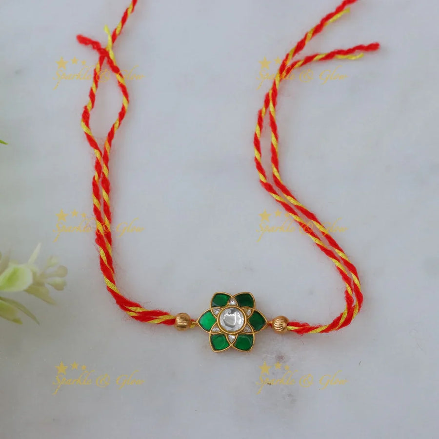 Exquisite Emerald Jadau Kundan Rakhi - Exclusive Festive Piece