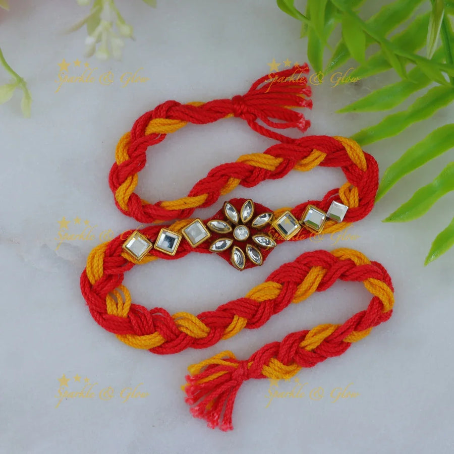 Exquisite Kundan Floral Rakhi with Vibrant Thread