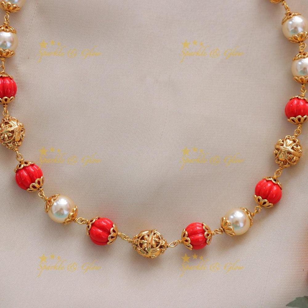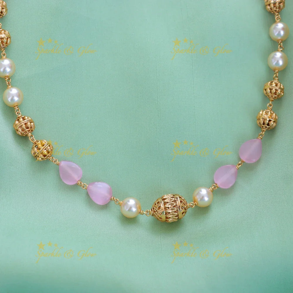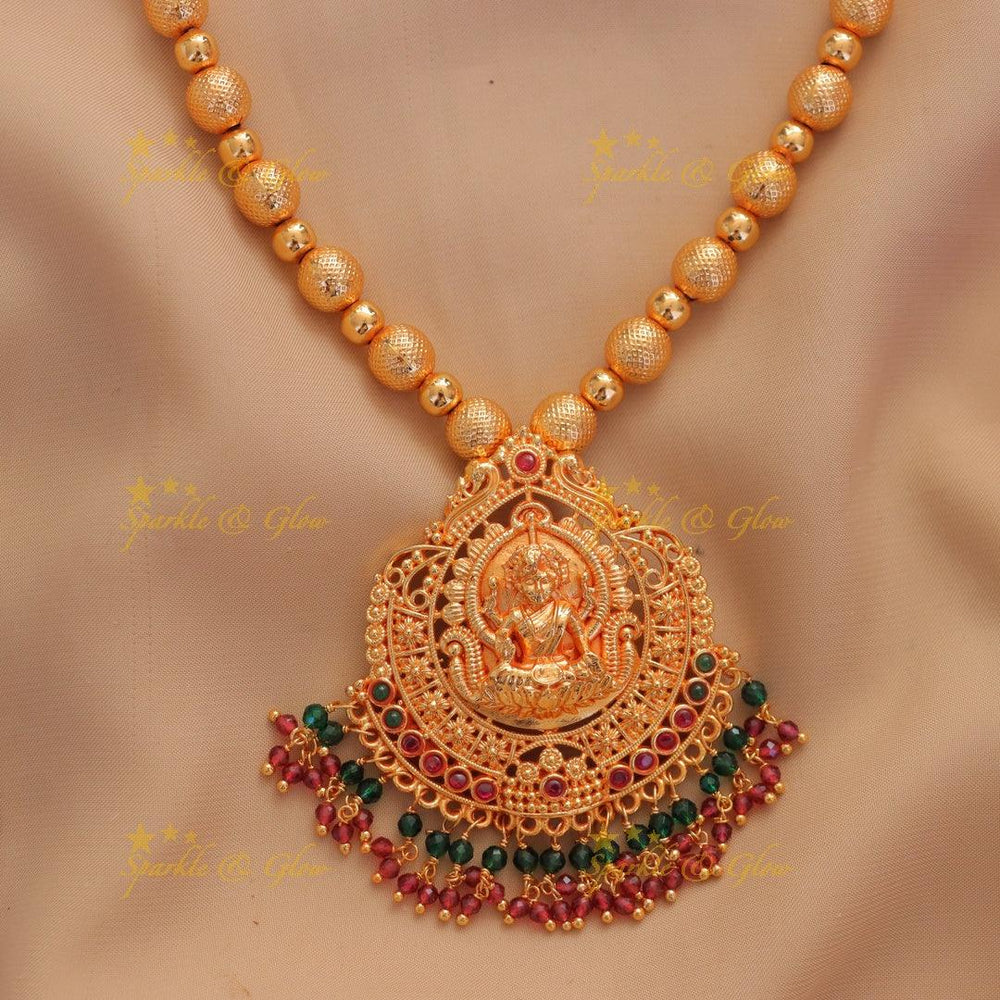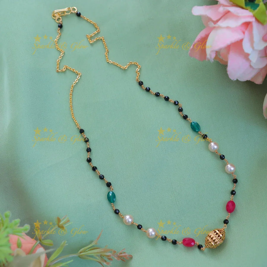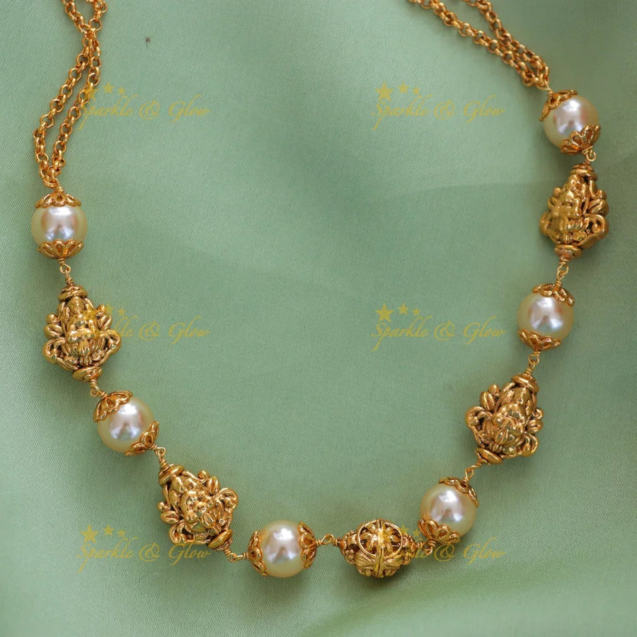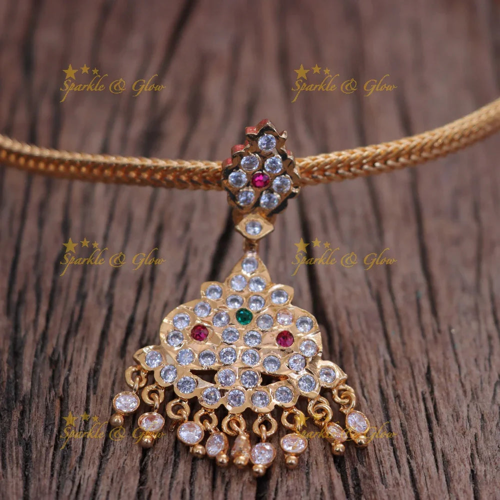 Discover a stunning range of short necklaces, each one a masterpiece meticulously crafted to perfection. Our short necklace collection boasts of pieces adorned with semi-precious stones, CZ stones, kemp stones and many more, all intricately incorporated into various designs such as the half-moon shaped ruby-like gutta pusalu necklace, the gold alike peacock carved Lakshmi short necklace, and the gold alike Dashavatharam gutta pusalu necklace. The perfect blend of traditional and contemporary styles, these necklaces are a testament to the exquisite craftsmanship and attention to detail that sets our jewellery apart.