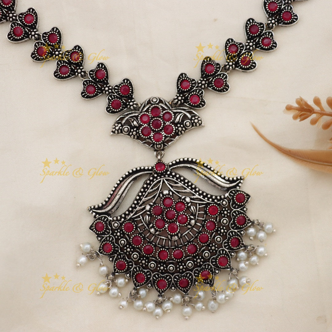 The necklace features a beautiful arrangement of blue floral motifs that symbolize elegance and tranquility. The stunning blue stones are expertly set in a refined pattern, enhancing the necklace's aesthetic appeal. Complemented by delicate pearl accents, this piece perfectly blends tradition with contemporary style, making it suitable for any attire.