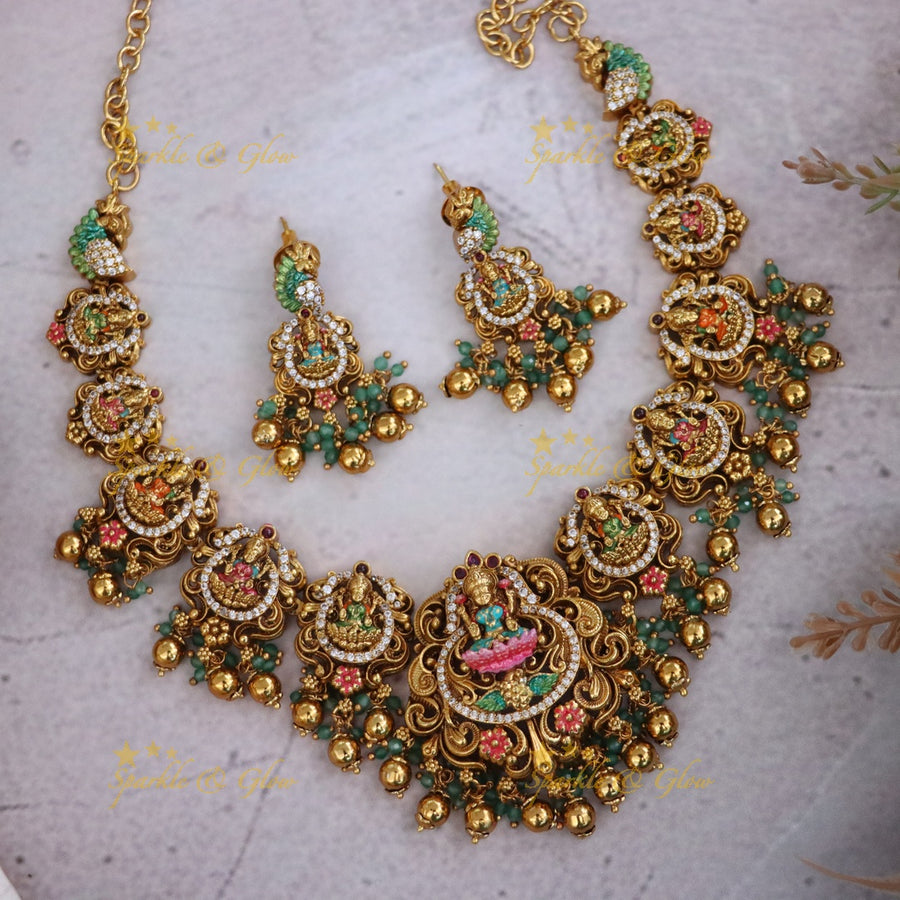 This necklace set is more than just an accessory; it's a celebration of artistry. Pair it with a traditional saree or a contemporary lehenga to make a statement that embodies grace and sophistication. Discover more exquisite pieces in our New Arrivals collection.