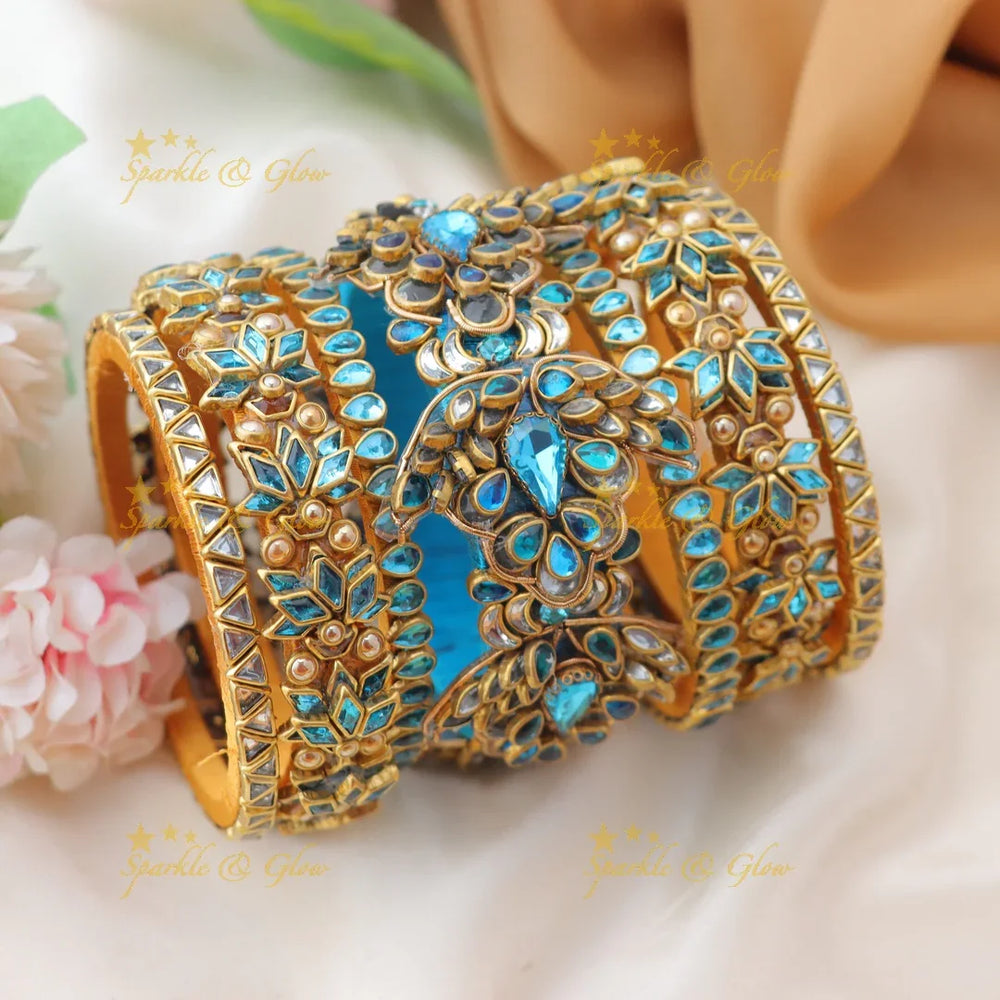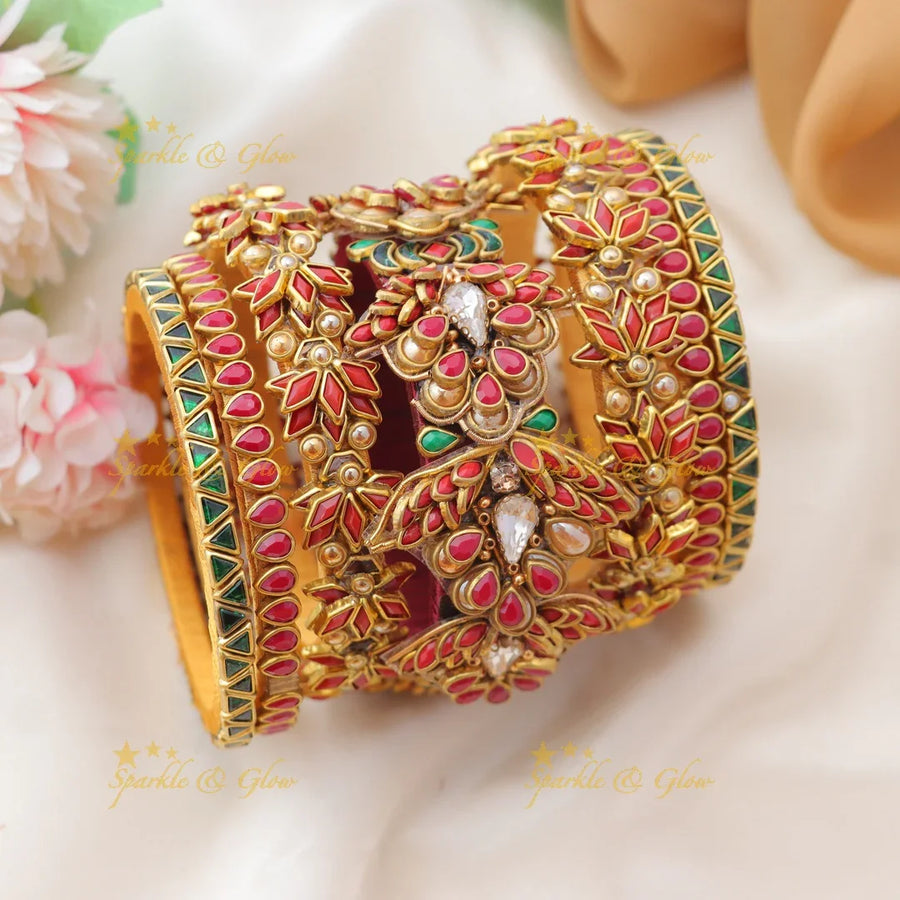 Wear these bangles as a bold bridal statement or pair them with your favorite kemp-jewellery or pendant-chain for a complete ethnic ensemble. Their versatile aesthetic allows them to beautifully complement both North Indian lehengas and South Indian silk sarees.