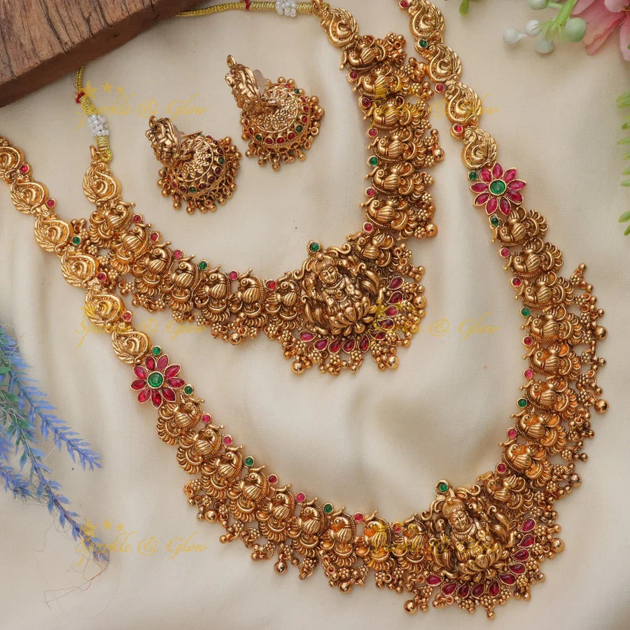 Premium Gold alike Lakshmi Peacock carved Budgeted Bridal Set