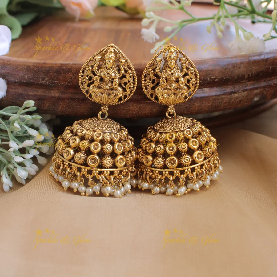 Idol lakshmi jhumuka with Pearl beads
