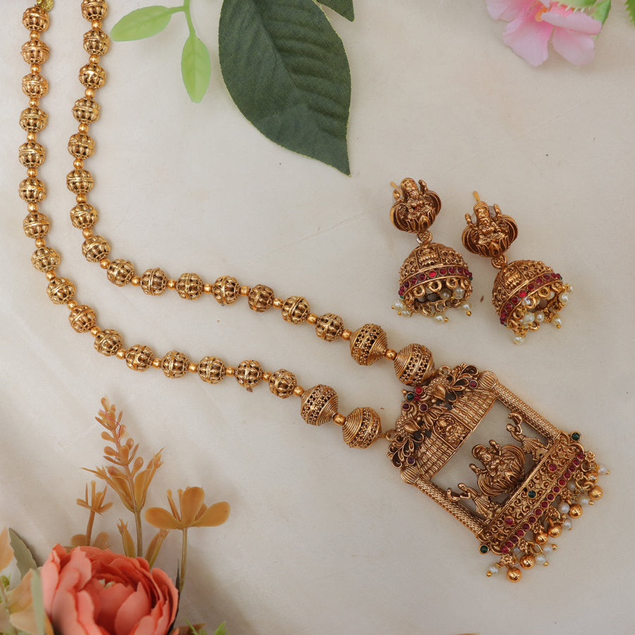 Ram Darbar Antique Gold Necklace & Jhumka Set
