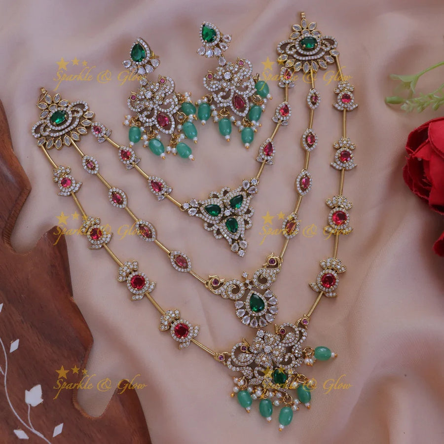 Each component of this set is crafted with precision, ensuring the highest quality that mirrors the opulence and tradition of authentic bridal jewellery. The combination of red and green stones against a gold finish brings a vibrant yet sophisticated charm.