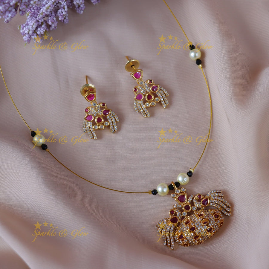 Celebrate the beauty of tradition and elegance with our Elegant Peacock Pearl Necklace. Meticulously crafted for special occasions, this short necklace features an exquisite peacock motif encrusted with shimmering stones and lustrous pearls.