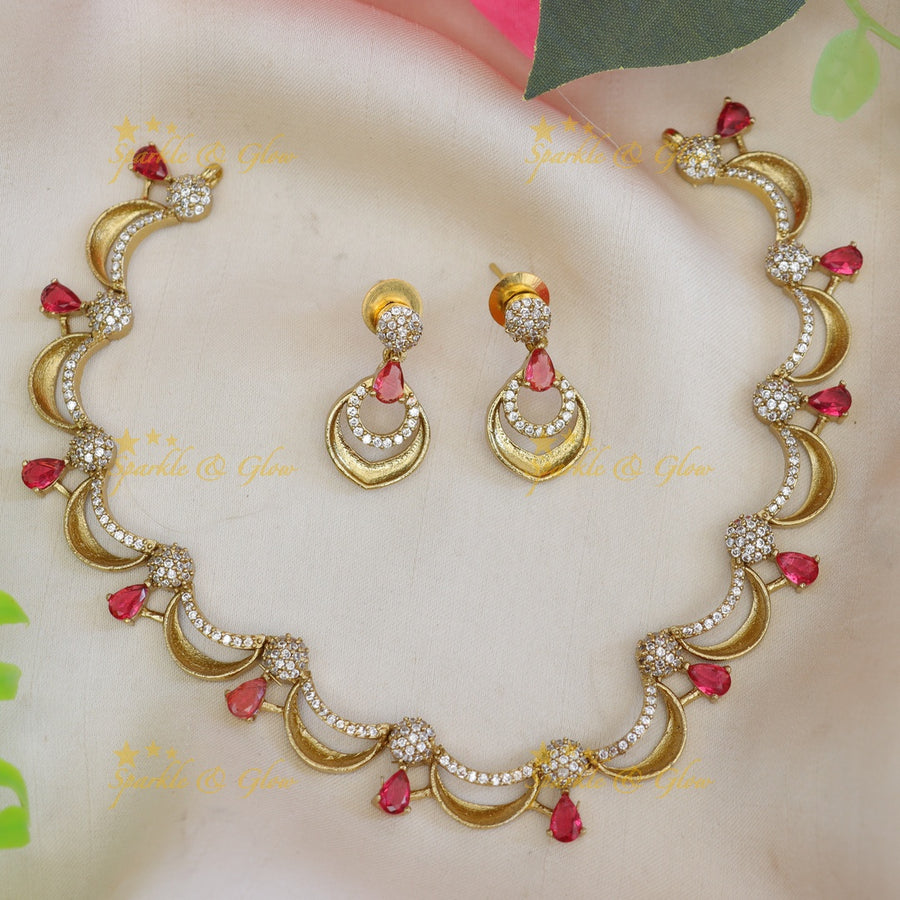 Meta Description: Discover elegance with our Festive Zigzag Necklace. Adorned with American diamonds, perfect for any occasion. Shop now for festive style.