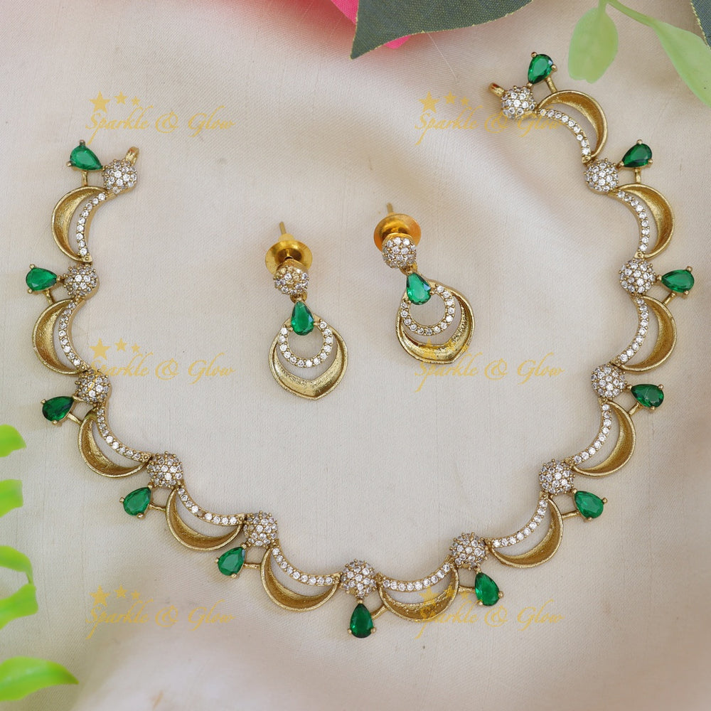 Whether you're attending a wedding, festival, or simply wish to elevate your look, this necklace offers a versatile option that pairs seamlessly with various outfits. The dazzling sheen of American diamonds set against a golden backdrop provides an eye-catching addition to any collection.