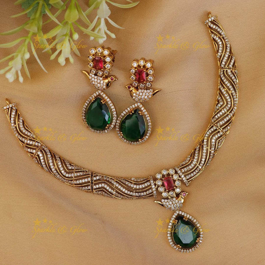 Exquisite Golden Peacock Hasli Necklace Set | New Arrival