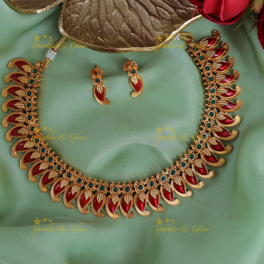 Meta Description: Discover the elegance of our Exquisite Mango Floral Necklace, perfect for weddings & festivals. Shop premium imitation jewellery today!
