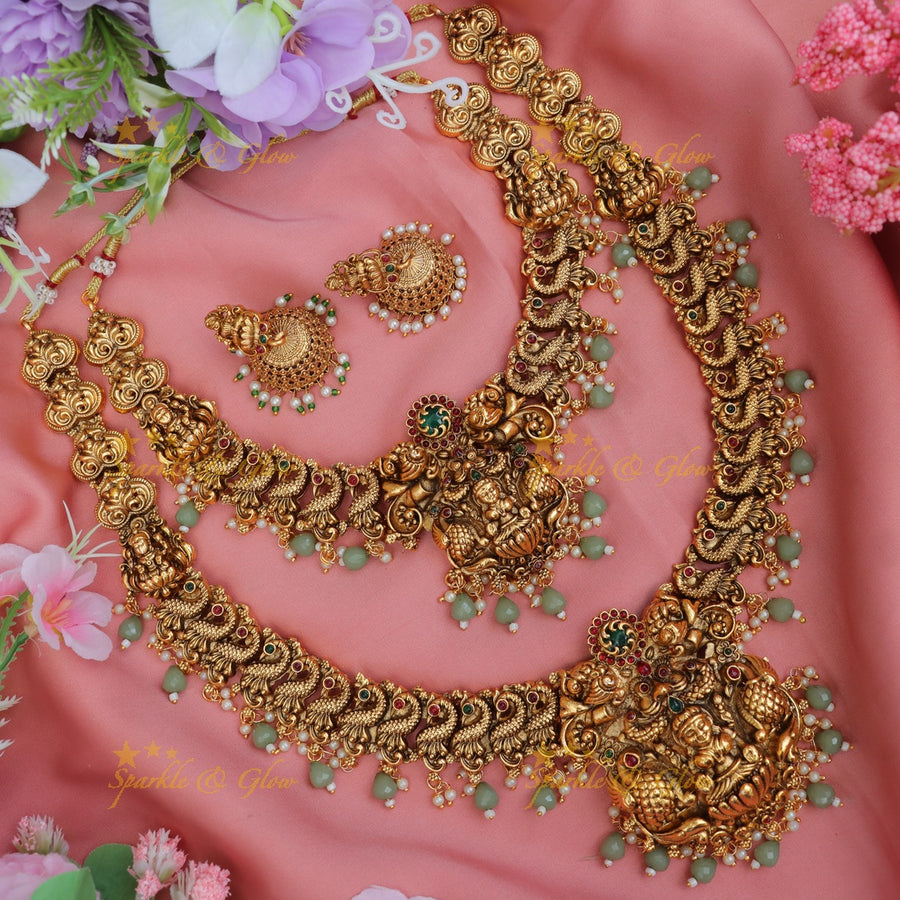 Discover the magnificence of the Exquisite Nagas Bridal Temple Necklace Set, a true reflection of artistry and tradition. Our premium necklace set, inspired by traditional Indian temple jewellery, is designed to complement the grandeur of Indian weddings and festive occasions.