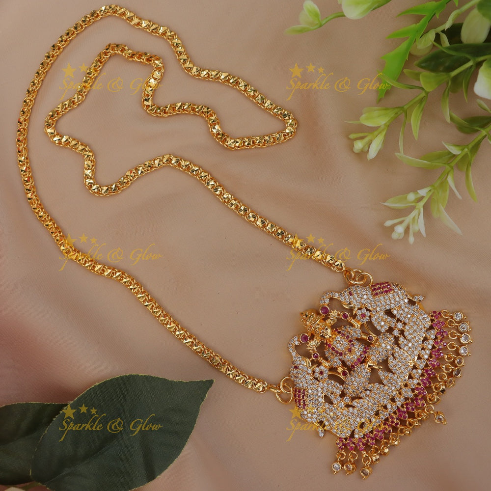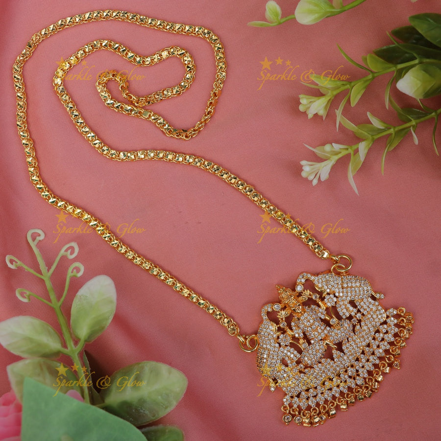 The intricate design of the elephant pendant symbolizes strength and wisdom, set in luxurious gold plating that captures the opulence of temple jewellery. Each element of this long necklace is meticulously crafted to provide you with an exceptional piece that honors traditional craftsmanship.