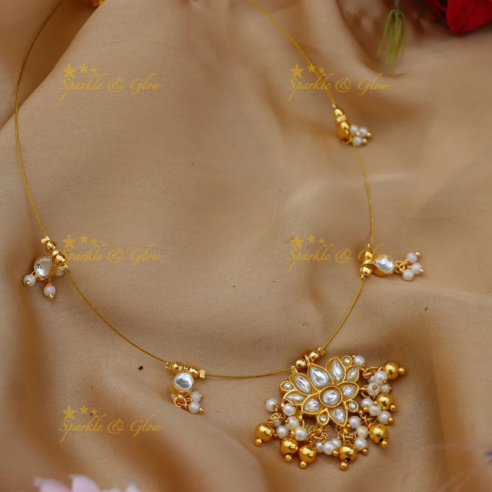 Make an unforgettable statement with our Grand Jadau Kundan Lotus Floral Invisible Short Necklace, a splendid fusion of traditional artistry and refined elegance. Handcrafted to perfection, this masterpiece embodies the soul of Indian festivities, bridal opulence, and heritage-inspired fashion.