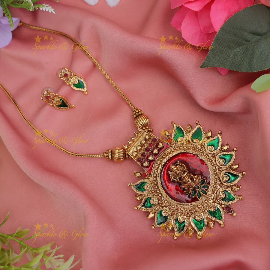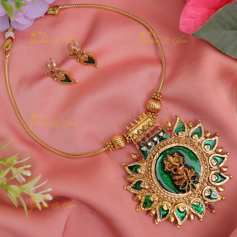 Meta Description: Discover our Kerala Style Ganesha Mango Pendant Necklace, perfect for weddings and festivals. Elegant, traditional design with a gold finish.