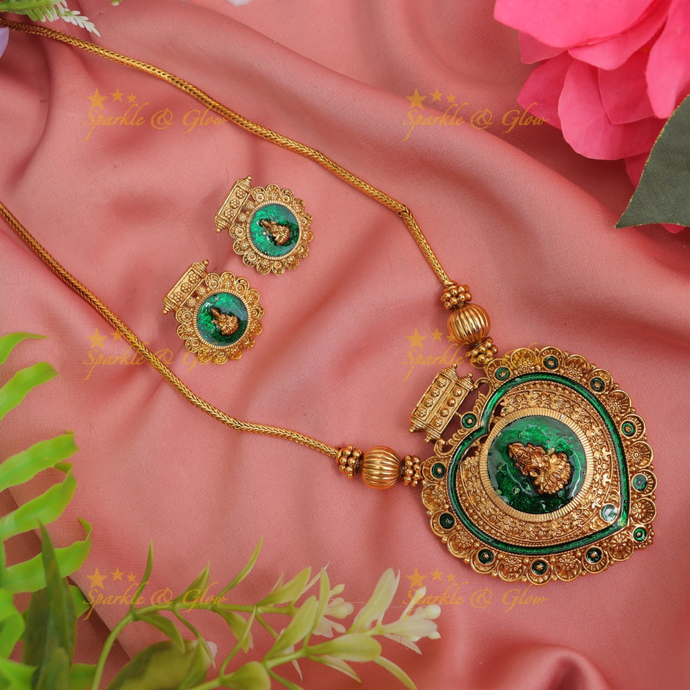 Meta Description: Kerala Lakshmi Heart Necklace - Embrace traditional elegance with a stunning temple design. Perfect for festive and wedding occasions. Explore now!