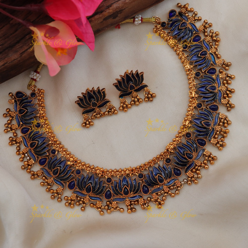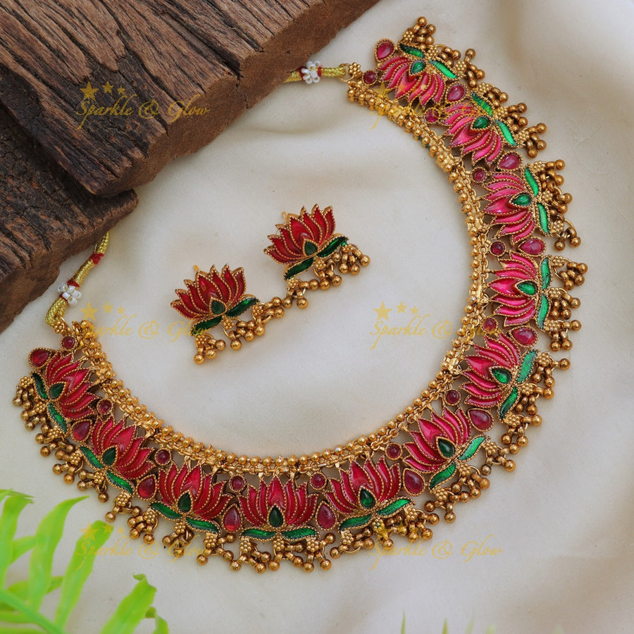 Meta Description: Discover our Lotus Floral Gold Necklace, blending elegance and tradition for festive occasions, weddings, and more. A perfect accessory for any outfit.