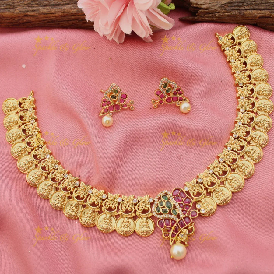 Statement Gold alike Kemp Idol Lakshmi Coin Floral Short necklace