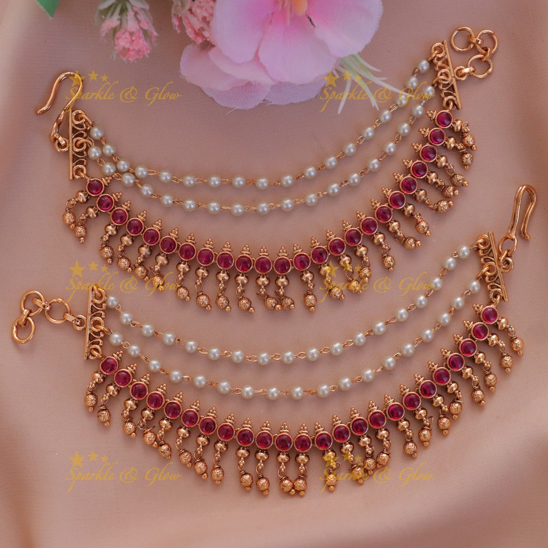Meta Description: Discover our Elegant Gold Pearl Earchain, perfect for weddings and festivities. A splendid blend of pearls and gold accents, adding charm to any look.