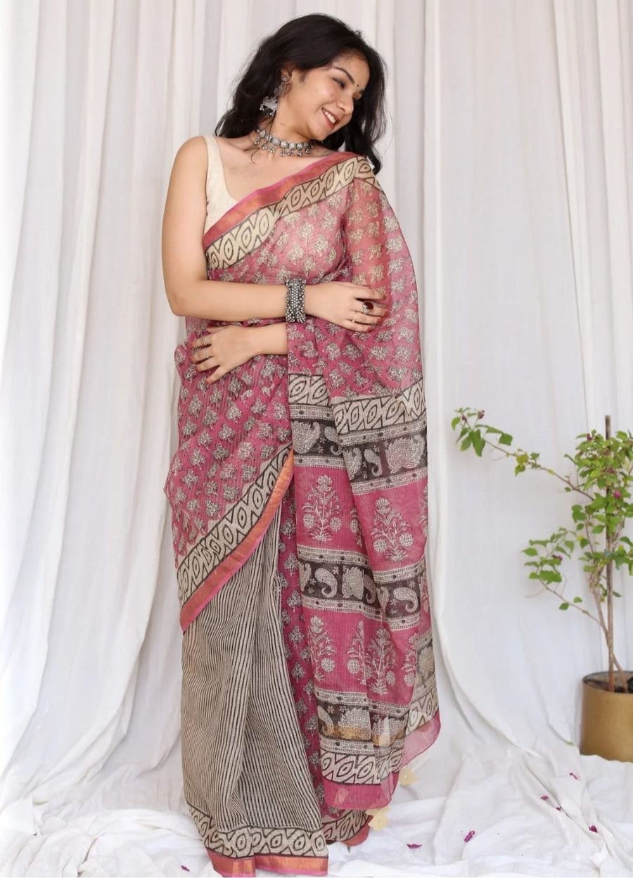 Elegant Handblock Kota Doria Saree for Festive Events