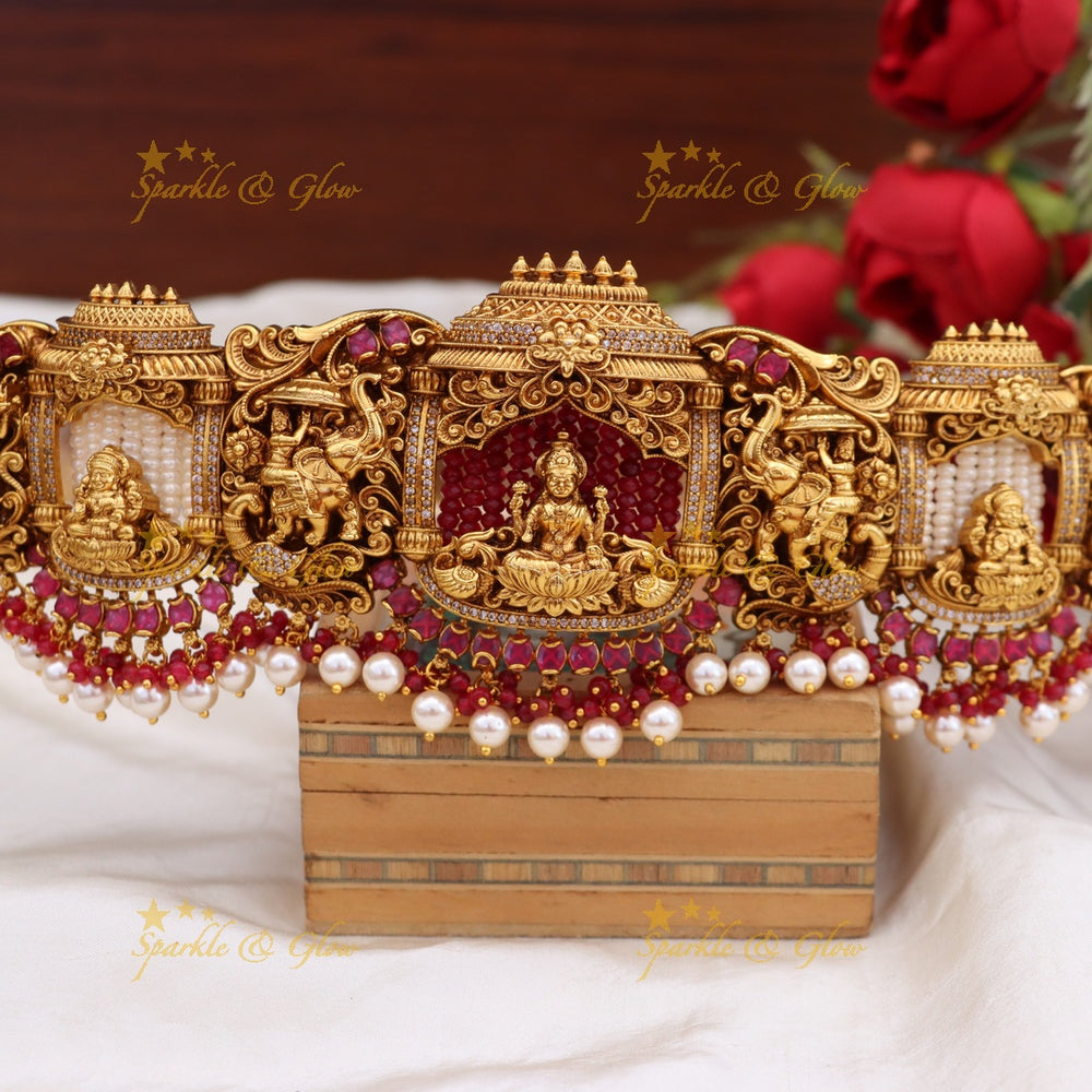 Meta Description: Discover the exquisite temple design hip belt, perfect for adding elegance to your wedding ensemble. Ideal for festive and traditional wear.